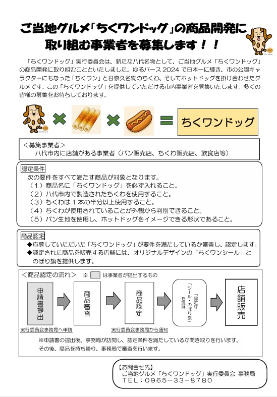 〒866-8601「ちくワンドッグ」実行委員会 事務局(八代市役所農林水産部 フードバレー推進課)