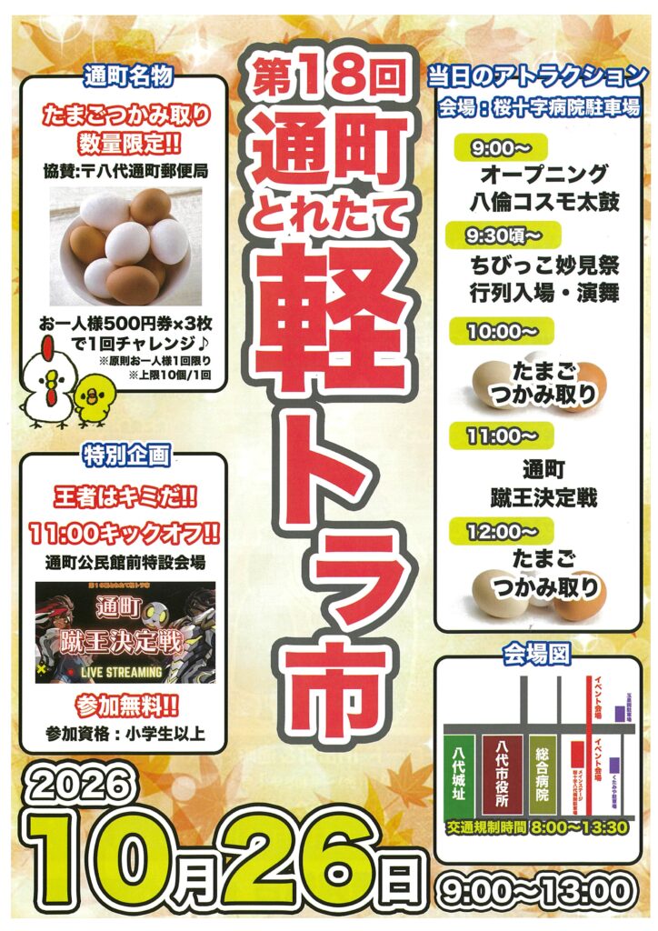 2026年10月26日(日)の9時~13時の間、二之町通りを中心に通町とれたて軽トラ市を開催します!!