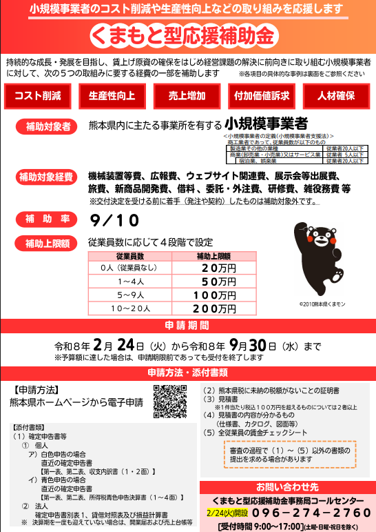 「くまもと型小規模事業者持続化補助金(通称:くまもと型応援補助金)」を実施します。